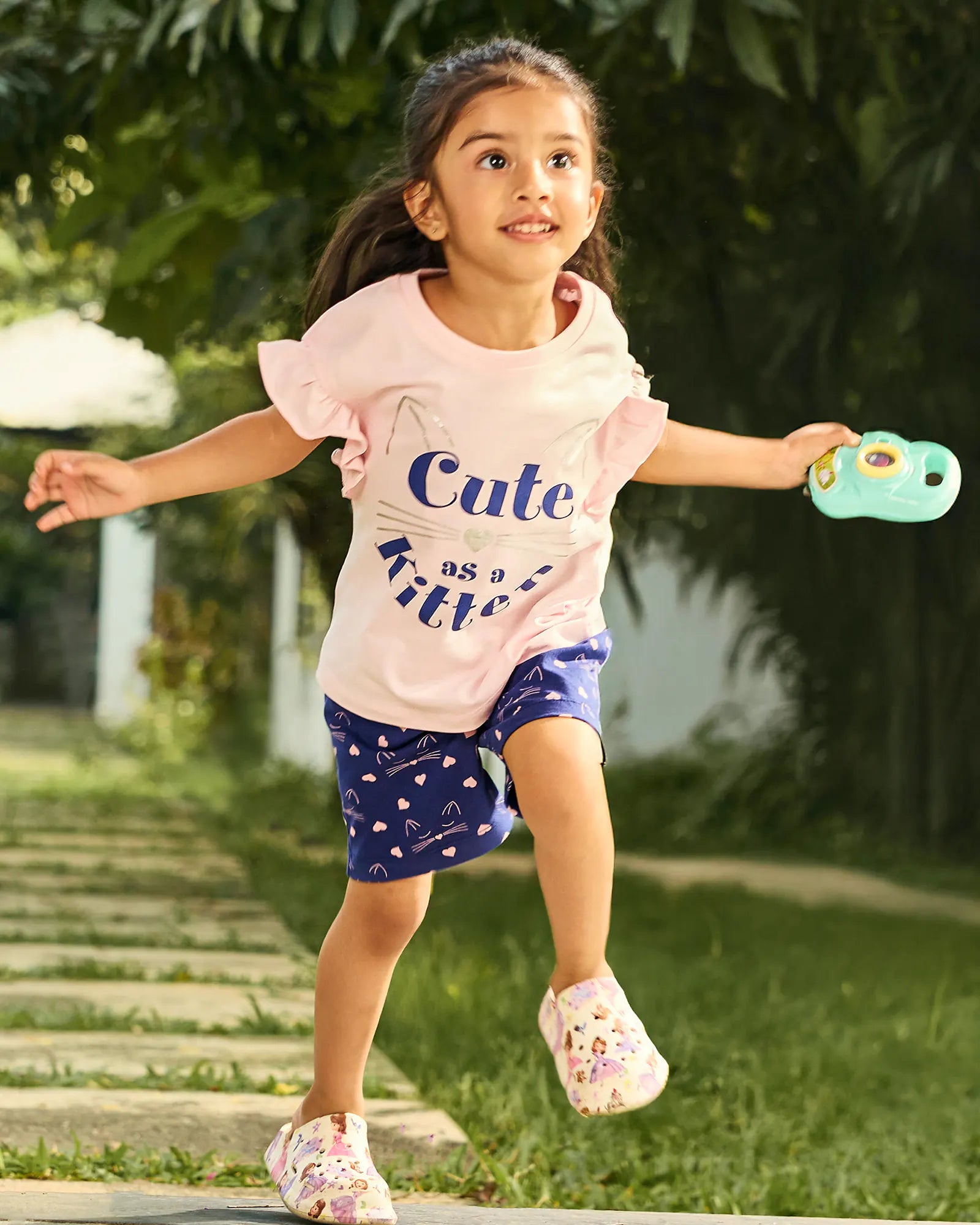 Cute Kitten Girls Shorts Set - 100% Cotton